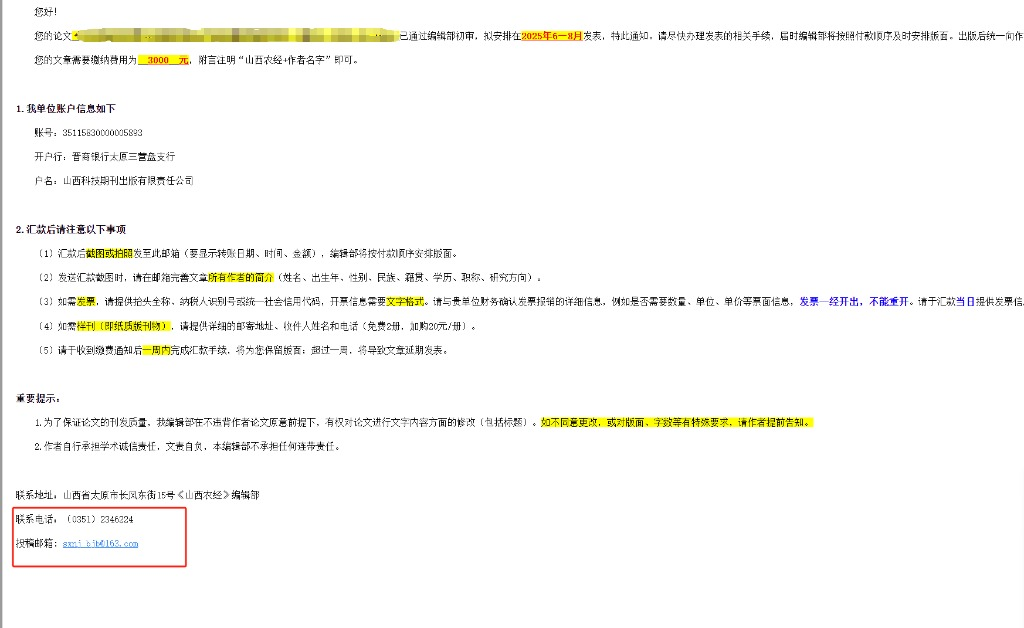 我的点评:2025年3月份投稿,2周回复录用,无修改,乡村振兴方向,字数5200左右,版面费3000元,2026年6月见刊。挺快的,适合有课题结项的需求。今年3月份投稿一篇文化相关,一周内据稿,建议大家主投农业、乡村振兴相关方向。