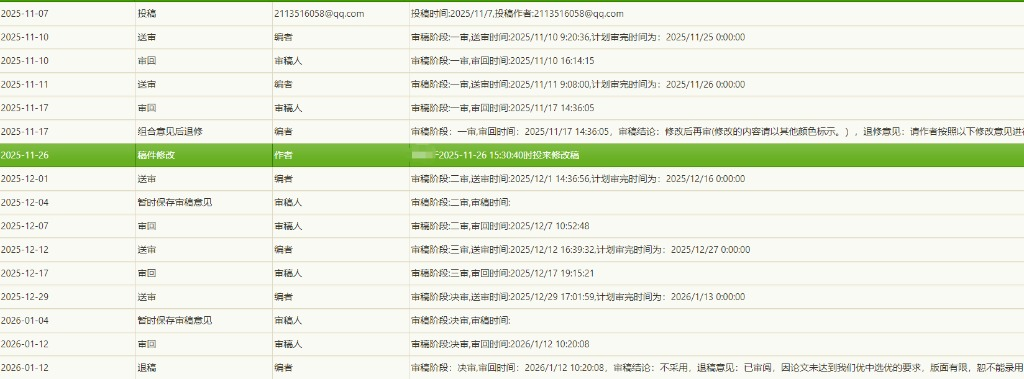 我的点评:一个神奇的期刊 打电话一直打不通 但编辑老师确实在干活 只能从系统上看 退修也没收到邮件 只能自己盯着了