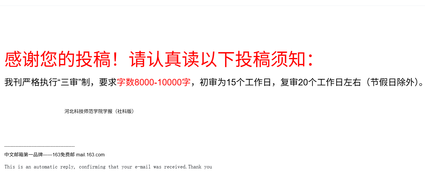 字数要求已经更新,要求字数8000-10000字。审稿时间也有变化,初审为15个工作日,复审20个工作日左右(节假日除外)。具体见投稿后的邮件自动回复截图。