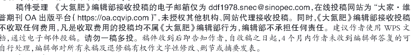 大氮肥(不收版面费审稿费) (Email投稿;官网投稿)的纠错信息