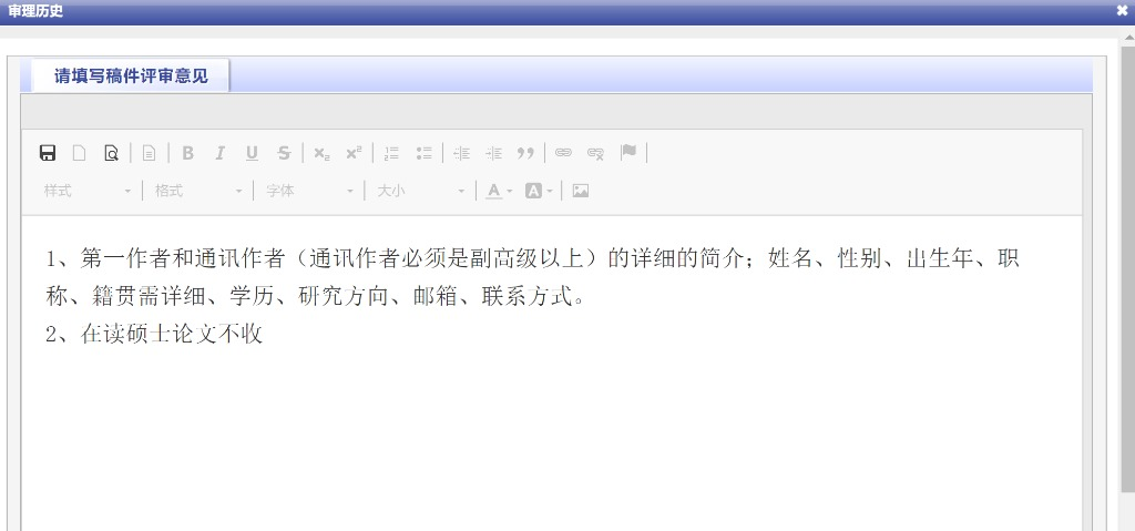 我的点评:不收在读硕士文章,一作和通信作者必须副高及以上