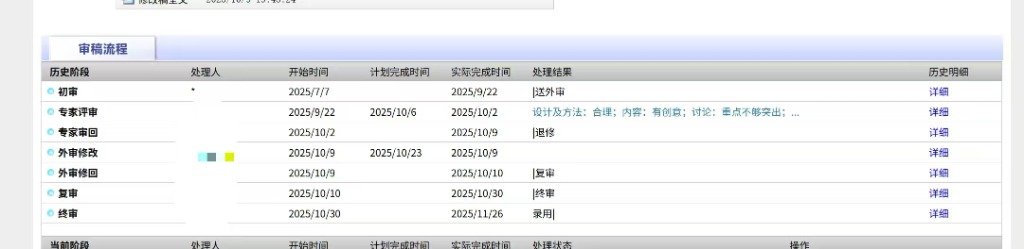 后面流程时间就和图里一样了,后续好像只有外审修改和最后录用有邮件通知,其他的得隔三岔五上去看
