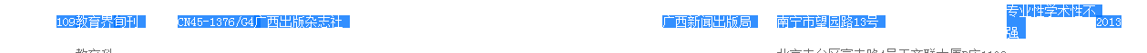老师,您好!1、《教育界》在国家新闻出版广电总局上查不到单位地址和联系电话。国家新闻出版广电总局 - 首页 http://www.gapp.gov.cn/zongshu/view.shtml?type=%E6%9C%9F%E5%88%8A&typeNum=2&orgName=%E6%95%99%E8%82%B2%E7%95%8C&pubCode=45-1376/G4