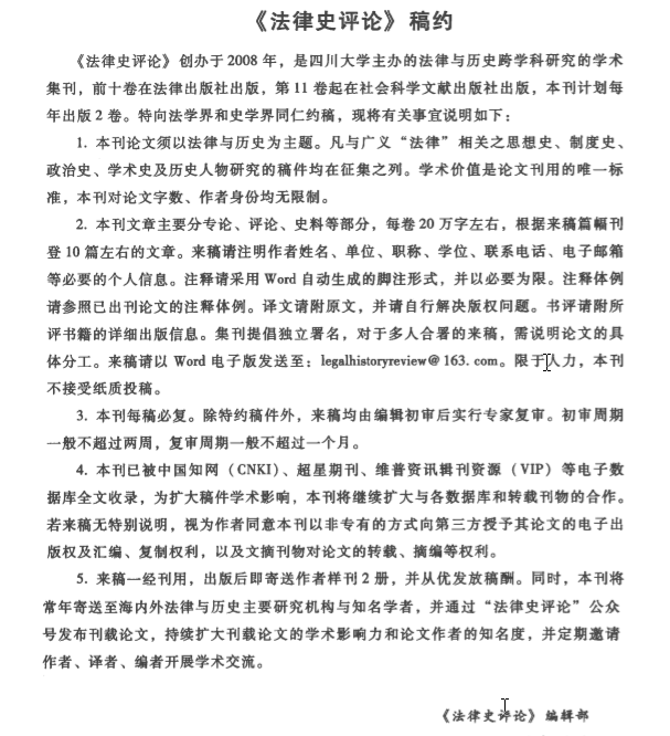 请收录《法律史评论》知网收录