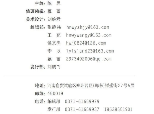 2020.6 刊内地址、电话、邮箱等信息见图