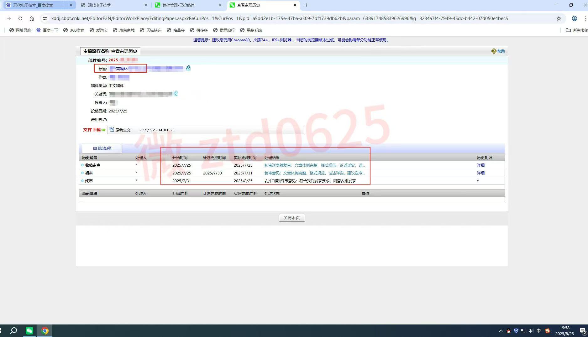 我的点评:25年1月21日投稿,3月底收到有采用意向,回复无一稿多投进入审稿流程,7月初收到拟刊登通知,最后在九月底知网刊登,但是样刊到现在也没有收到
