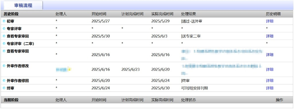 我的点评:8月7日投稿,9月5日编辑加微信好友,当天返修回去。12月25日通过微信联系我,要求增加参考文献,目前在等待出刊中。编辑朱老师人不错,很客气,也能及时解答问题。整个过程中,系统上面是没有变化的,后续都是通过微信联系。