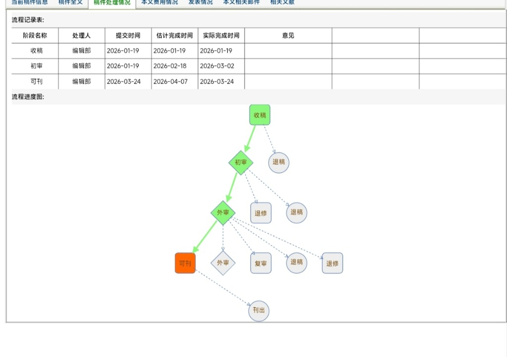 2026年1月,主动致电编辑部,了解到稿件已通过初审。据编辑介绍,该刊初审通过率较低,因此能过初审,基本就可以放下一半的心了。约两周后,我再次联系编辑部,得到回复说稿件已被录用并进入排版流程。