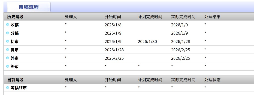 我的点评:投稿一个月了,还在初审中,预计处理时间也过了一个多星期了,不知道是不是过年的原因,还是忘记给我退稿了呜呜