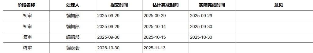 我的点评:新晋C刊。因为中间很少有返修环节,所以对稿件质量要求较高。整体上两个多月,终审可会久一点,录用后会有简单的修改意见。盲猜本刊外审出现在复审和终审阶段。