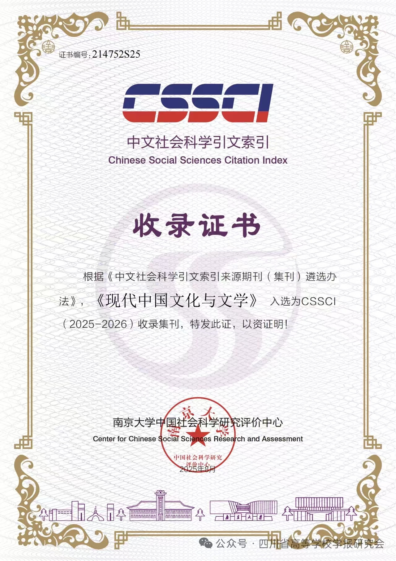 我的点评:《现代中国文化与文学》已经入选CSSCI来源集刊(2025-2026)目录,敬请管理员标注,谢谢!