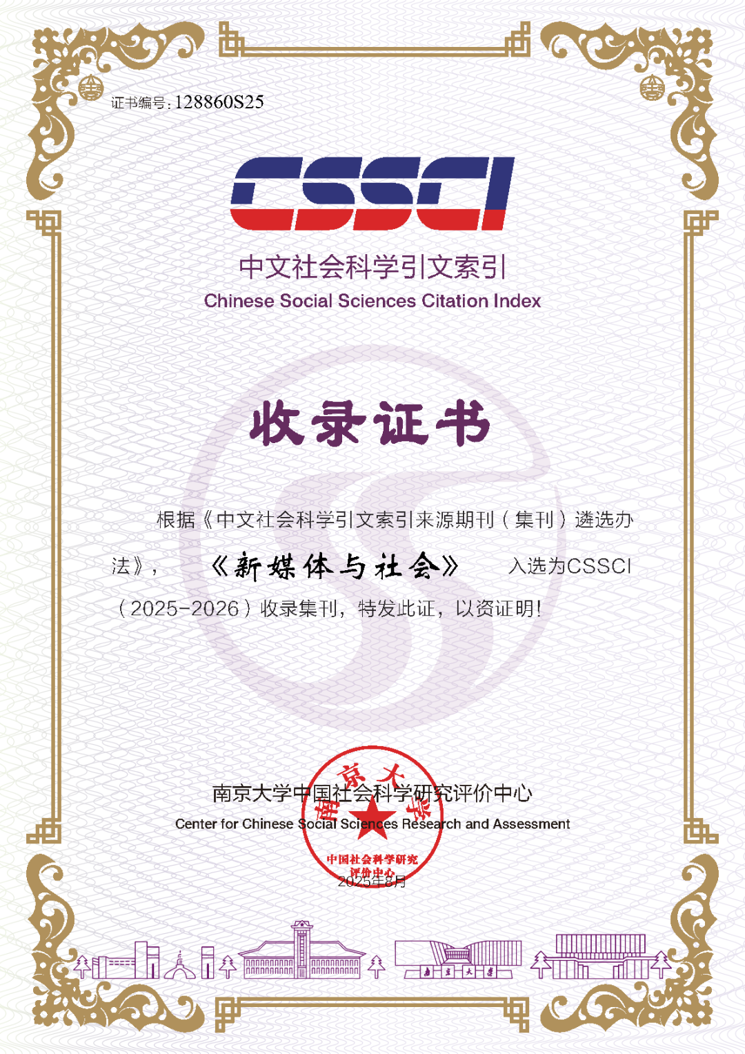 我的点评:新媒体与社会确认入选 2021-2022年 CSSCI 收录集刊,信息来源“社科文献”公众号文章《社科文献 2021-2022 CSSCI来源集刊一览(一)》(链接:https://mp.weixin.qq.com/s/P_Y4xNpyVeU3_Mv2VwY3cg)。万维老师可以更新下标注~