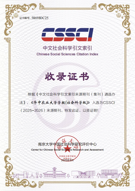 我的点评:华中农业大学学报(社会科学版)入选南大核心(2025-2026)来源期刊