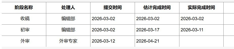 2026年2月5日投稿,3月2日收稿,3月11日初审通过,3月12日开始外审;