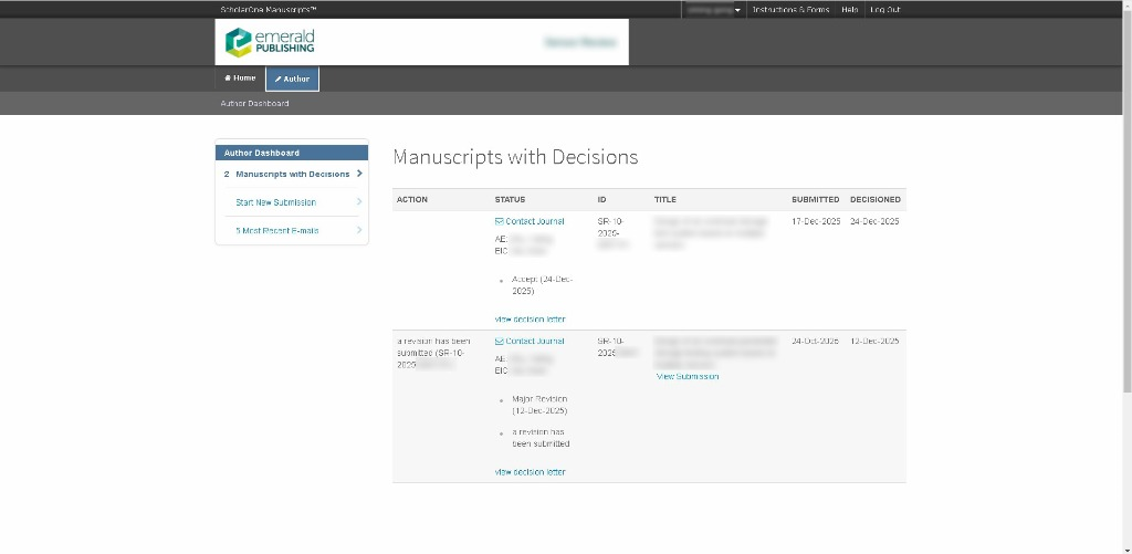 我的点评:25年10月24日投稿,10月27日进入外审,12月12日一审完成(两位审稿专家:1小修接受,1拒稿).编辑给的大修。我5天大修完成,12月17号提交修改稿,12月24日中午收到录用通知。整个审稿流程采用双盲评审,公平公正。我觉得这个期刊还是非常不错的,我的第一篇SCI从该期刊起步!祝期刊越办越好!