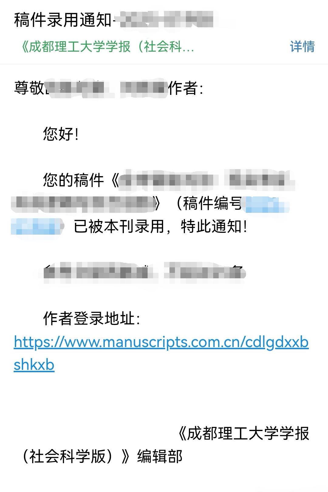 我的点评:2025年7月7日投稿,之后立马会收到稿件回执。当前已经放暑假了,但是没有想到成都理工大学学报(社会科学版)期刊社的老师非常认真负责,暑假开通了绿色投稿通道,没有耽误一点时间。