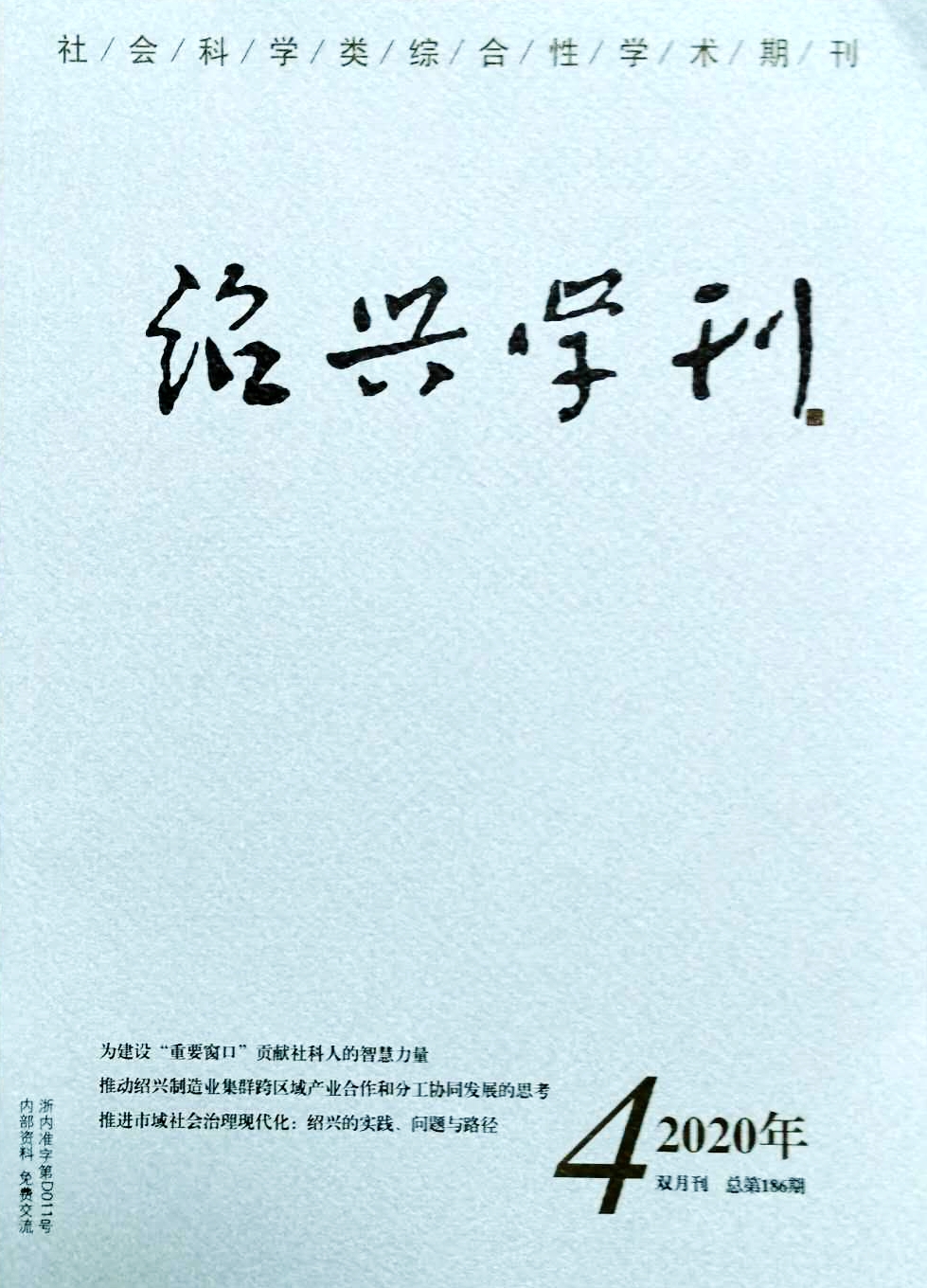 《绍兴学刊》编辑部,主办单位,刊物信息等刊物内页,见截图,2020年第4期
