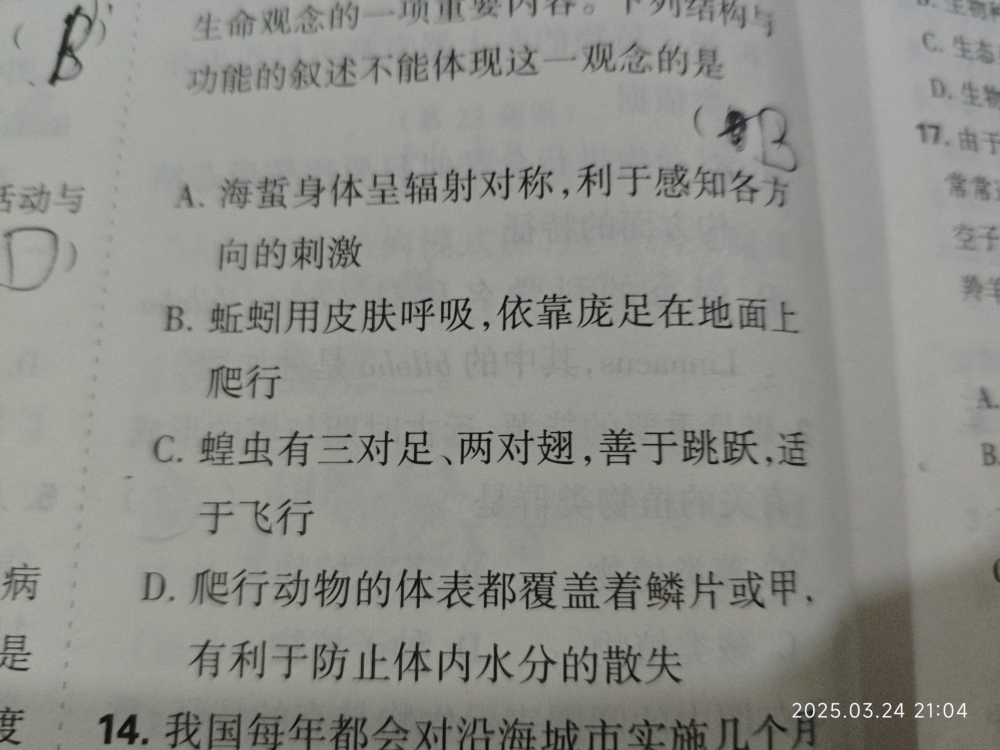 中教万联新全优,全优中考,生物系统总复习。其中的主题综合达标检测卷第6页第13题 b选项疣足拼错了