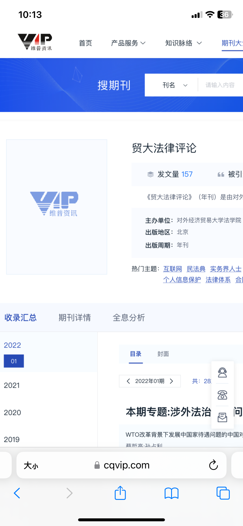 贸大法学(原:贸大法律评论)(集刊)维普收录
