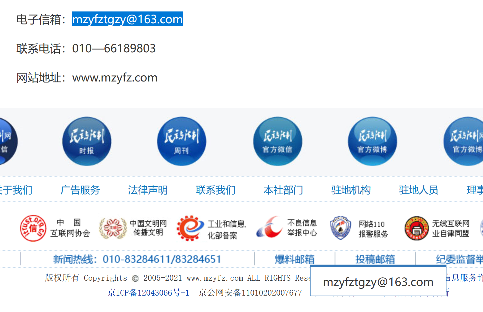 管理员回复:您好,该刊目前最新一期(2021年42期)刊内公布的仍是mzyfzzz@sohu.com,且暂未查到邮箱变更的通知。我们公布信息首要是以刊内为准,谢谢!