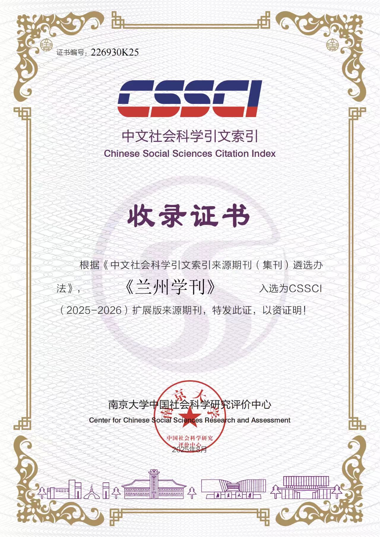 该刊入选CSSCI(2025—2026)扩展版来源期刊
