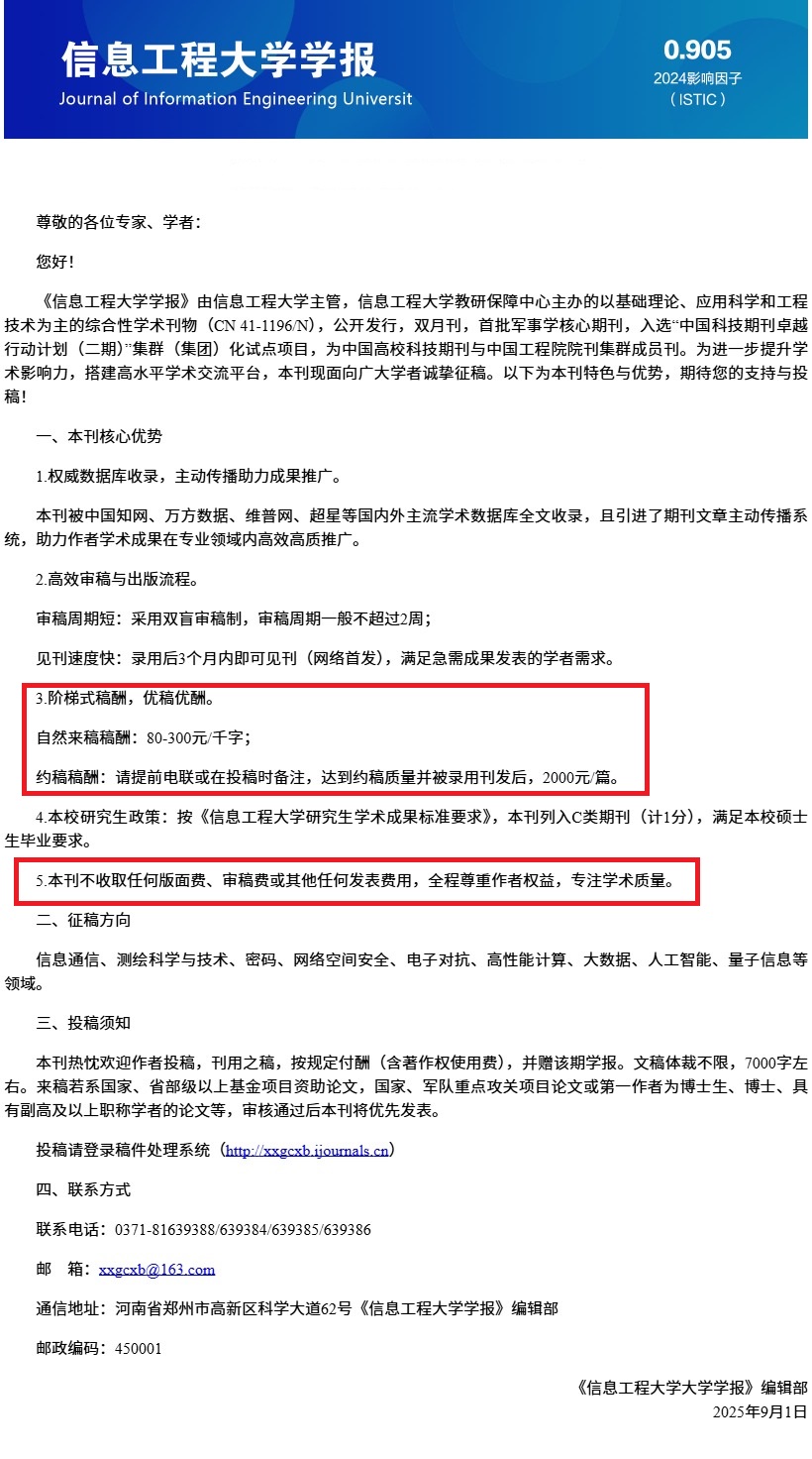 该刊不收版面费审稿费,发放稿费。