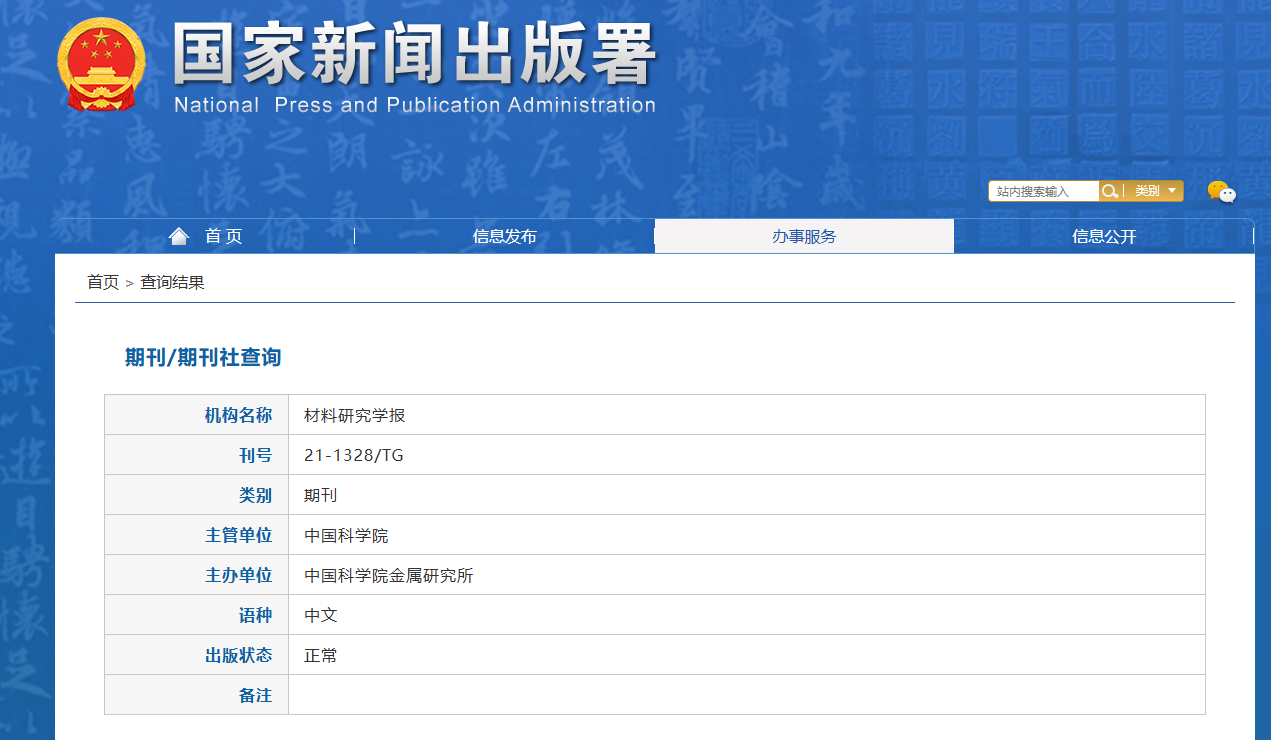 材料研究学报主办单位由国家自然科学基金委员会和中国材料研究学会更改为中国科学院金属研究所;由中国科学院主管。