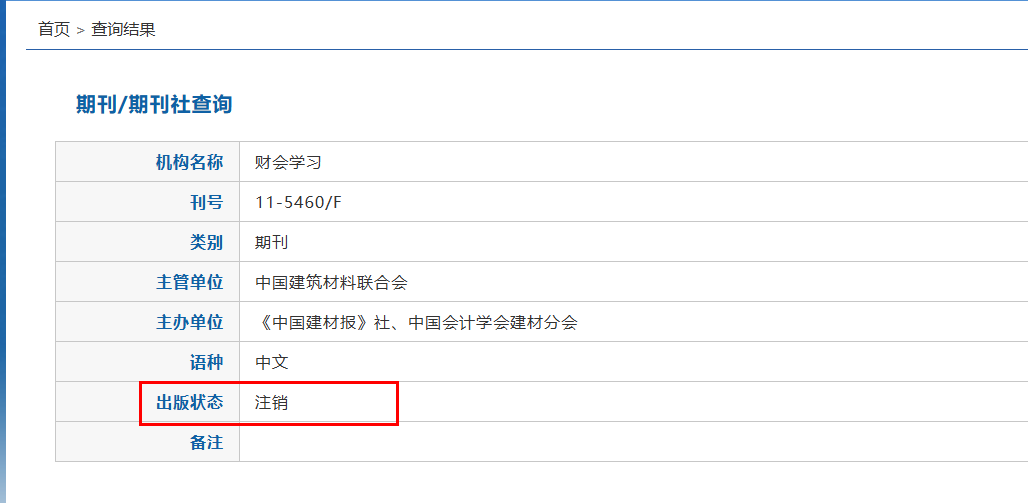国家新闻出版总署查询该刊已为注销状态