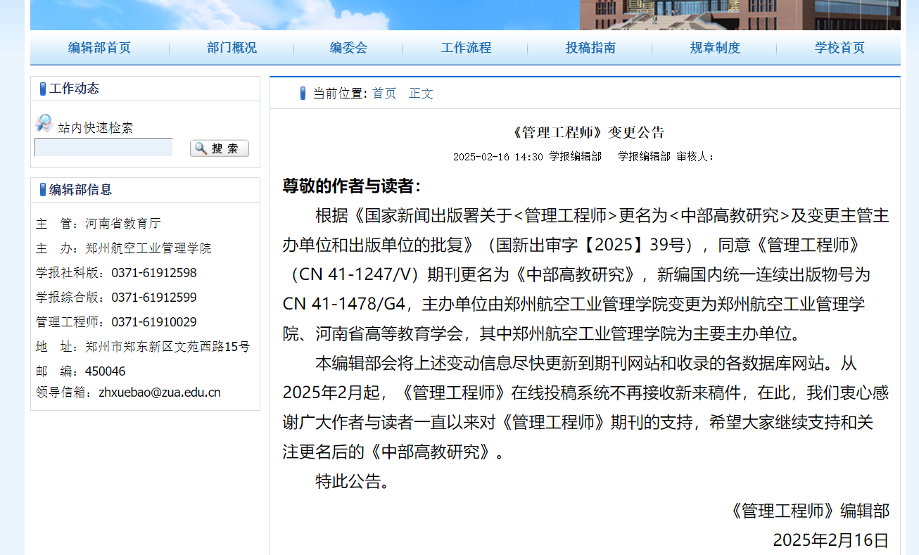 该刊更名《中部高教研究》。系统已经更新,https://glgc.cbpt.cnki.net/WKG/WebPublication/index.aspx?mid=glgc