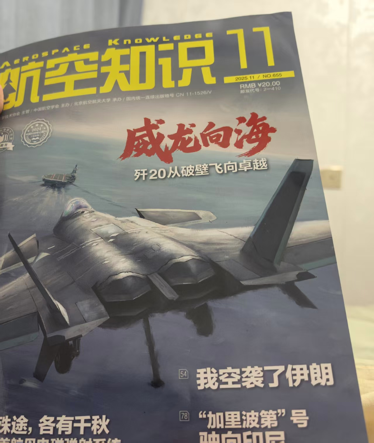 我发现2025年11月份杂志封面有一个问题,本期的主题,威龙向海歼-20我记得只有普通的发动机没有用过2元矢量喷口,但为什么封面上面画的是2元矢量喷口?我还发现第42页里面也有一张图片,他说的是海军版本的F22,但是和封面绘图的歼-20又很像,好像把两种飞机结合了。一是想纠正歼-20的喷口问题,二是想问一下图片两张图画的设计。