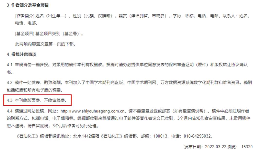 管理员回复:您好!经核实,官网“收版面费不收审稿费”的征稿启事为2022年发布的,2025年8月官网首页发布了不收版面费审稿费的公告,详见:https://www.shiyouhuagong.com.cn/CN/news/news55.shtml。如有疑问,可直接联系编辑部进行咨询,谢谢关注!