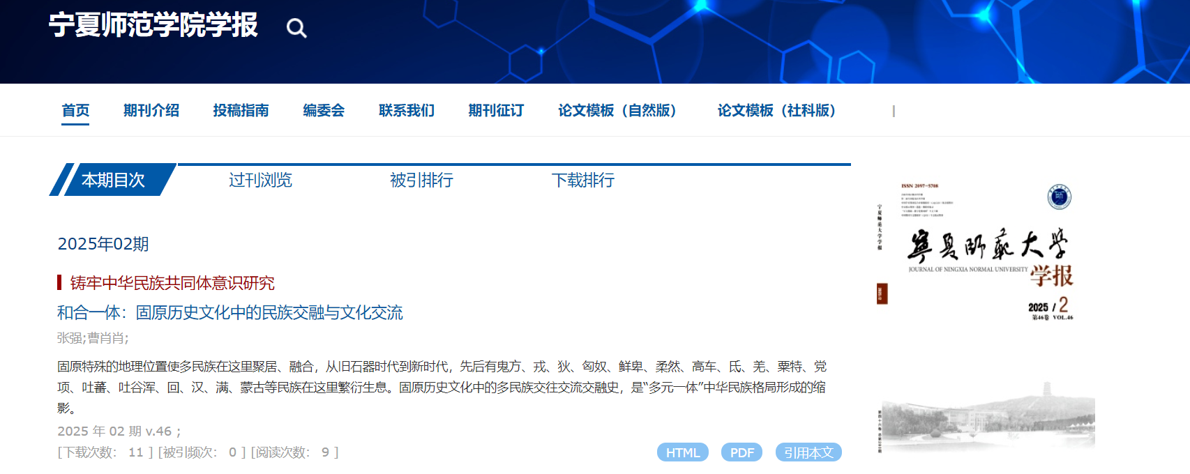官网25年2期封面和万方已更名为《宁夏师范大学学报》