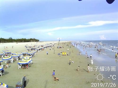 北海闻名远广西。银沙柔细浪滩奇。