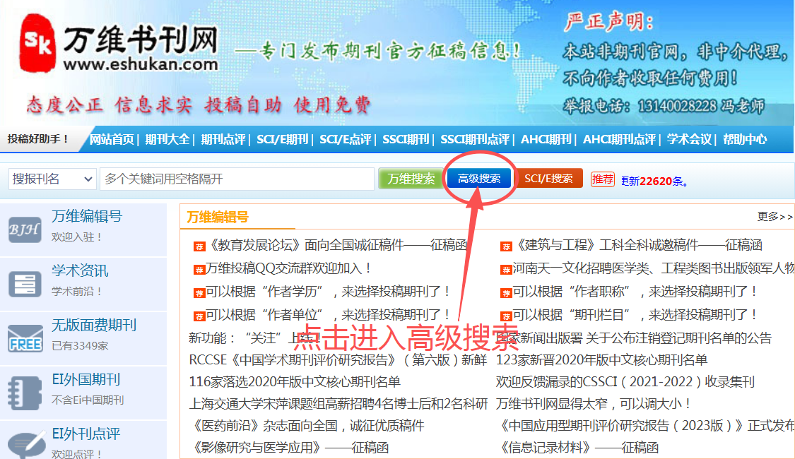 其实,有一个简单又高效的方法,可以帮助大家快速从栏目匹配角度找到合适的期刊——那就是利用高级搜索功能。