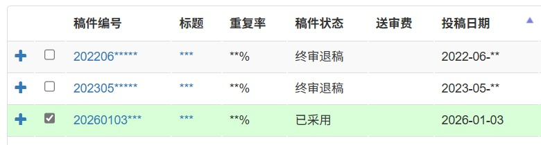 该刊审稿效率高、流程透明,十分尊重作者,投出后会很快出具相似度检测报告(系统内直接展示重复率和报告原文),而后各类实质性审稿的状态流转均会在系统内及时更新(详情页稿件历史栏仅展示关键节点,过程流转可见于作者中心表单稿件状态项),如果出于基本原因(如scope不符)不能采用或进入后续流程的会快速给出结论和针对性意见/说明。如果绑定服务号,可在微信上直接接收稿件状态消息。所有文章一经“采用”(基本相当于国际期刊的accept in principle),均会直接公示于官网首页“最新录用”栏目,投稿、修回等关键时间亦全部公开,可堪是学术期刊的行业楷模!采用后,编辑加工过程及编加后复审亦可能要求再进行技术性调整和文本推敲,该刊编校极其细致入微(毕竟是出版科班),会对各类细节进行推敲、提出调整、逐一确认,编辑十分认真负责。值得注意的一点是,因为该刊已被Scopus收录,所以最终刊印前需要提供英文长摘要,但在投稿阶段并不强制提供(刊印版中文摘要无需长摘要,对于录用稿件会先要求提供中文长摘要,定稿后再补充英文长摘要),如编辑部认为有必要的文章另会要求提供视频摘要用于“增强出版”及官网、官微宣发,要素流程均规范而不失人性化。该刊不收取任何费用,并有稿酬给作者。