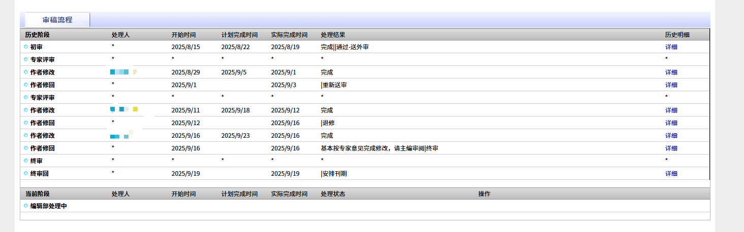 我的点评:如果不是在暑假投的可能速度更快,编辑老师的态度也很好,很耐心,为这个期刊点赞。我这个退修了三次,可见外审专家和编辑老师的认真!祝越办越好!
