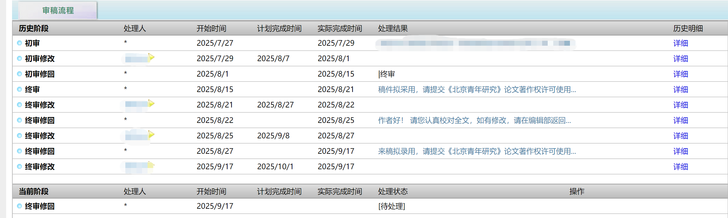我的点评:初审的确很快,但怀疑是AI审稿,三天给了十几条长篇大论的审稿意见。暑期也在审稿,但是不知道为什么一到终审就莫名其妙拖着作者好几天,还让提交了两遍著作协议。。。