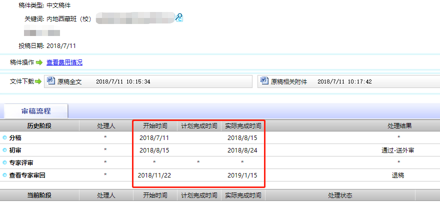 我的点评:3月份投稿,4月显示送外审,5月打电话通知录用,近期刊出,应该是在2018年第2期刊出的。系统投稿,整个审稿流程清晰,赞一个!