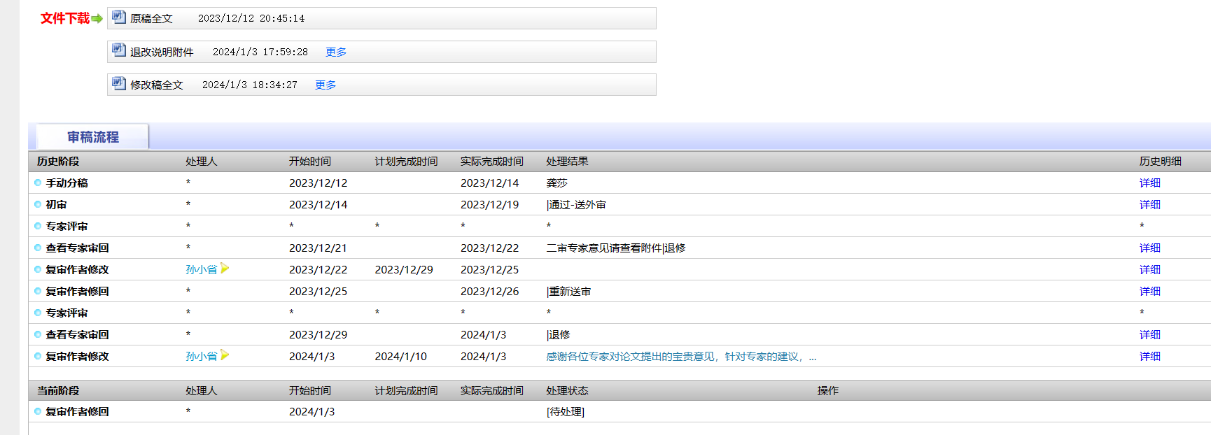 三次投稿,两次被拒,感觉官网上的信息往往有所延迟。初审和专家评审比较快,通常一个月左右。后续的时间就看具体情况了,而且官网有时也不更新了,比如我的第二篇已经拒稿了(经电话咨询)。建议过了专家评审阶段,就打电话问问。