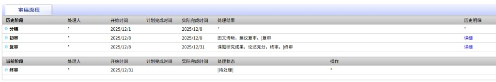 我的点评:符合广大书友的一般情况,无项目,初审、复审正面评价,终审无理由退稿。仔细看下来,复审出来第二天必有终审结果,审核进度很快,但评语不是很走心,四个字评价一下,走走过场,然后就给你退咯。 有课题、有项目的朋友可以试试,没有的话也可以体验一下论文进初审、复审的快乐。我体验过了,以后都不会投这个了