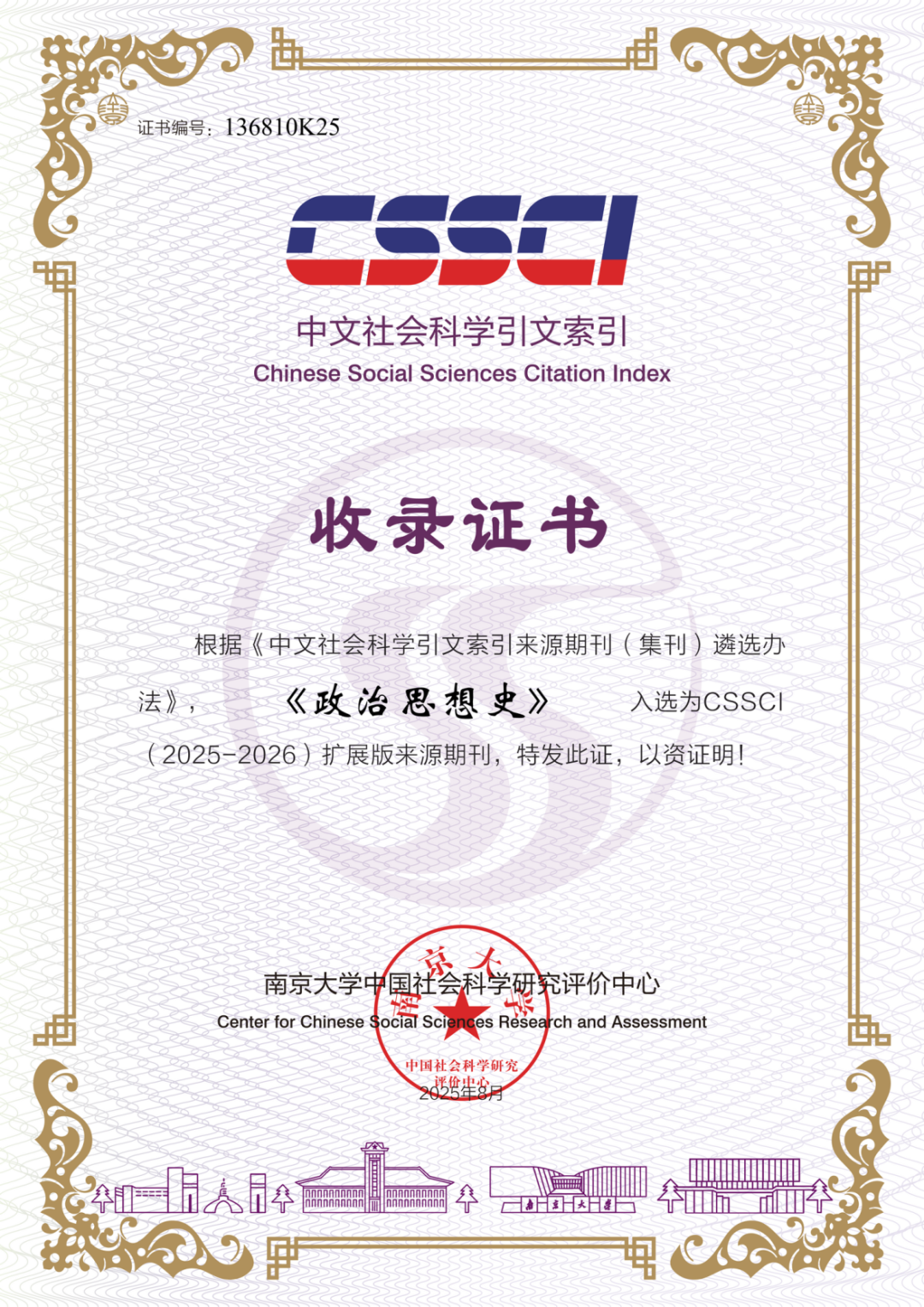 我的点评:恭喜政治思想史入选cssci(2025-2026)扩展版期刊。