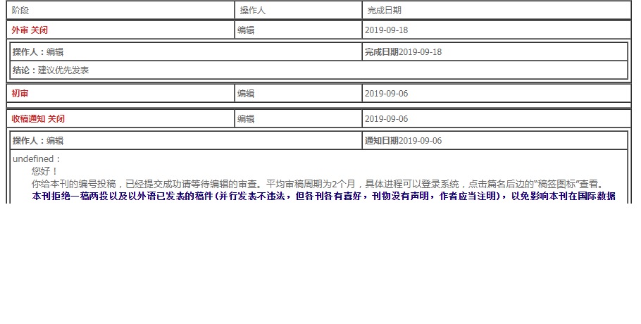 我的点评:之前发过一篇,审稿速度一般。疫情期间,感觉是不是编辑都不上系统审稿了,都四个月了,还是初审。之前若初审慢的话,给编辑部发一封邮件,对方还能给回复,包括询问审稿意见都可以。编辑部的态度还是挺好的,相对于其它一些刊物。但现在不知道咋没有音讯了,退稿信也不给一封。