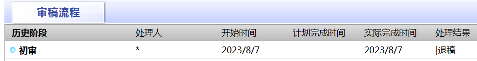 我的点评:离大谱。6月14投稿,中间没有显示进入外审环节,7月14进入终审,一直没有动静。今天打电话询问之后说让我关注系统。然后打开系统就看到这个,审稿流程直接变成今天初审,今天退稿。