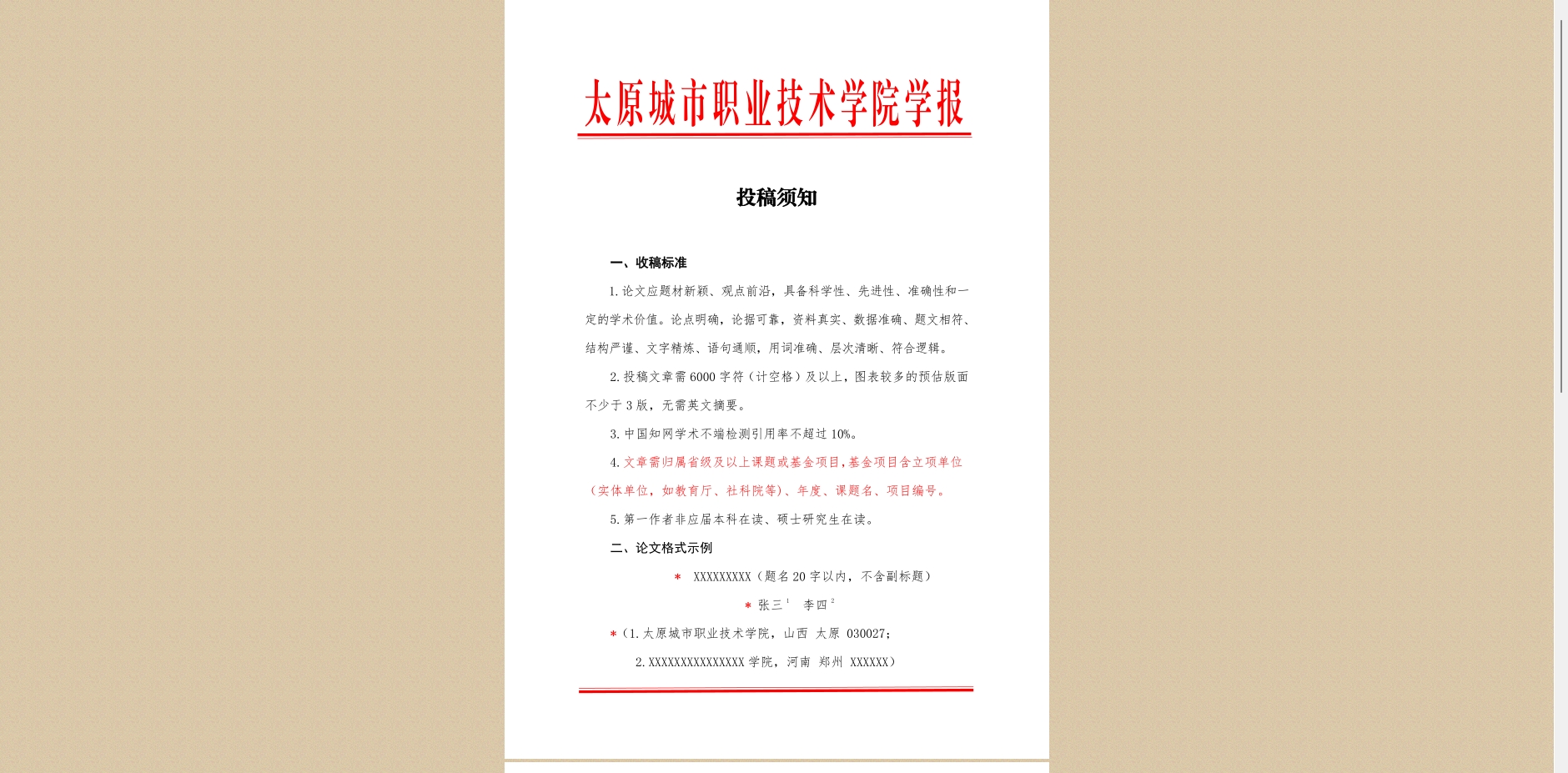 太原城市职业技术学院学报编辑部 郭非:0351-5633033 13643612981。