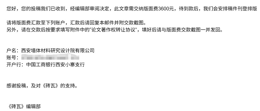 我的点评:邮箱投稿后有到自动回复,10 月份投稿,10月份录用,审稿周期约 15 天,审稿效率较高。我的稿件字数 5000 余字,对应的版面费为 3600 元。期刊为知网收录,从同级别期刊来看,版面费水平适中。