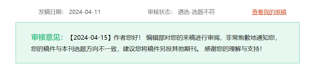 我的点评:投稿体验感挺好的一北核,加上过年期间,总共俩月左右录用。版面费有点贵7k,吴主任也挺好沟通的,联系环节打电话会咨询作者的相关信息,感觉偏重于博士副教授以上好中。两天后收到财务的电话再次确认文章相关信息,然后发送协议,协议等于录用函。6-8个月左右见刊。财务和吴主任沟通态度都挺好,没有网上说的那么可怕~