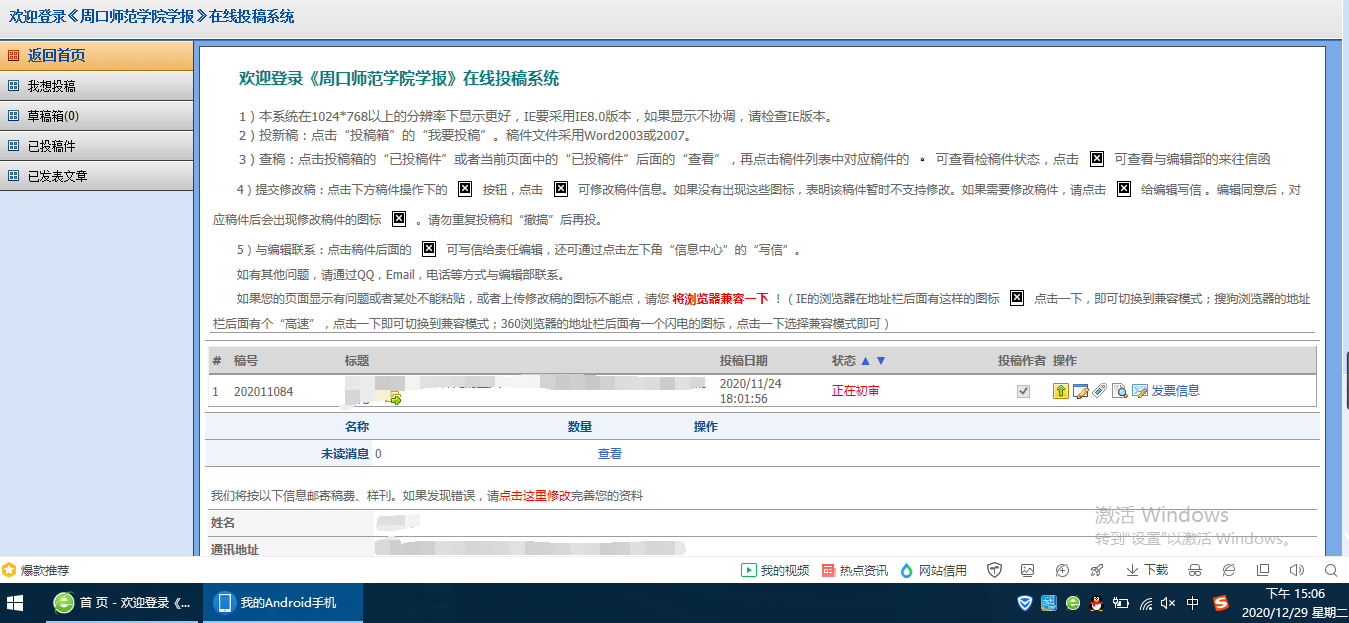 我的点评:投稿将近1年了,今天投稿系统还是正在审稿中。。。无语了,这篇文章已经发表在其他学报上了,而且拿到手5个月了,哎~~~
