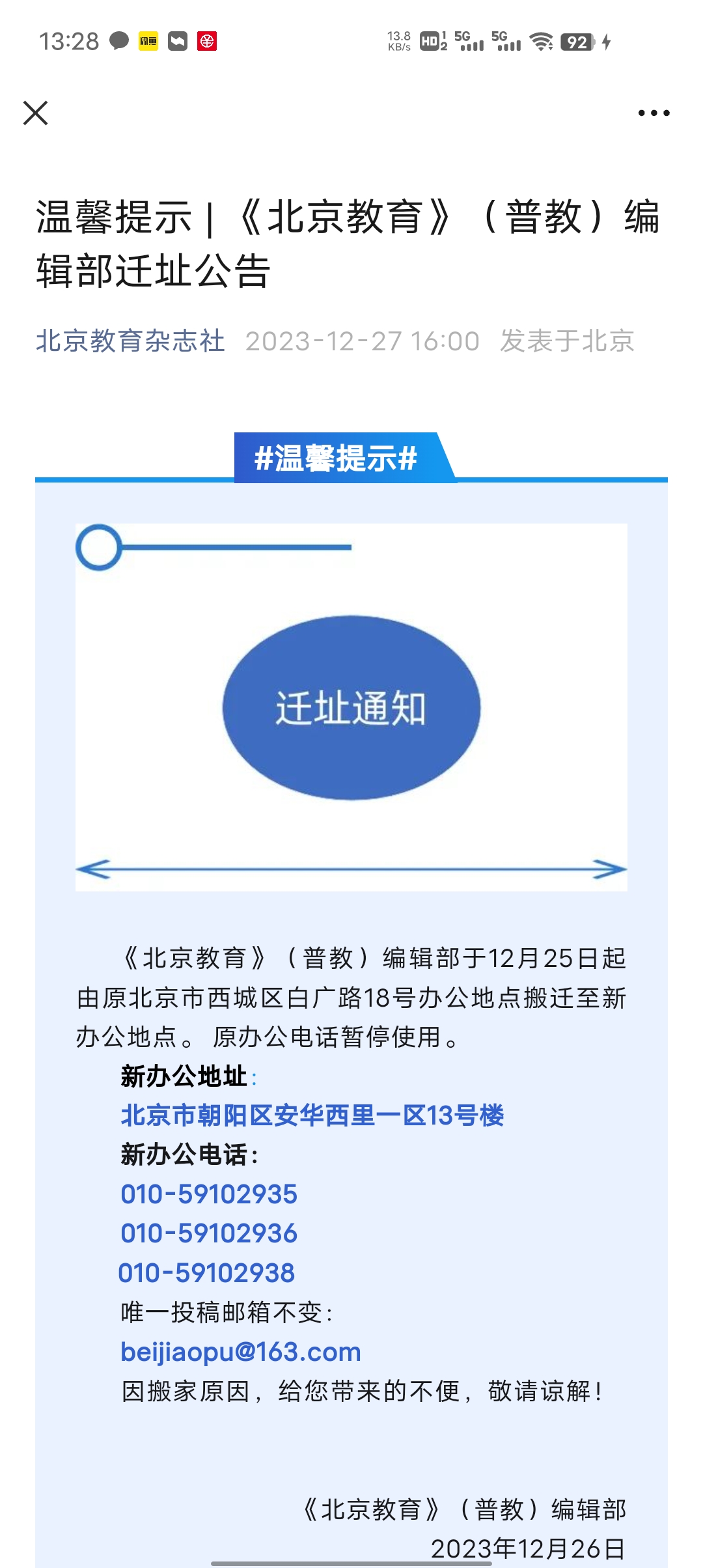 该刊变更编辑部电话和地址,https://mp.weixin.qq.com/s/nAA6IjPVzNdnhaga-tUFIA