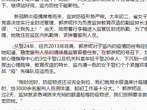2020年3月27日 湖南日报第12版《高强内的坚守》 第四段第一句 “从警24年,经历2013年非典,郭彦妮对于监内的疫情防控有经验。” 应该是“经历2003年非典”