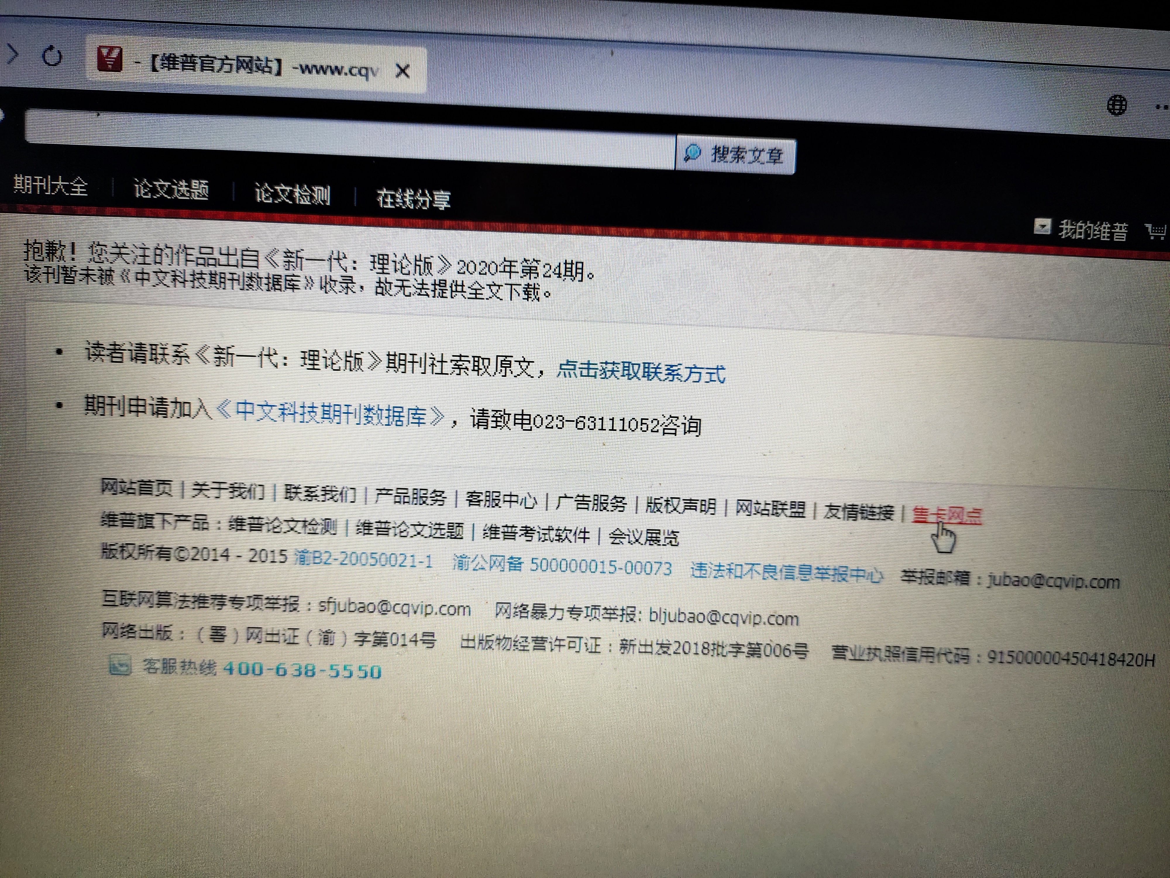 你好,我在新一代2020,24期发表的论文,当时都上网了,有链接,现在怎么查不到了